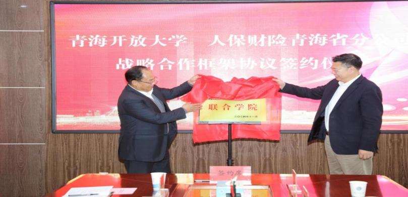 青海开放大学与人保财险青海省分公司举行战略合作框架协议签约仪式,并为“青海开放大学—青海人保联合学院”揭牌,开启“校企”产学研融合新模式。双方将在课程设置、教师聘请、教学形式、教学管理、考试组织、金融保障服务、科研攻关等方面展开紧密合作,培养更多服务青海经济社会发展的有用人才。