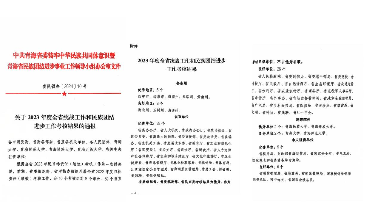 六、青海开放大学在全省统战工作和民族团结进步工作考核中再获“优秀”