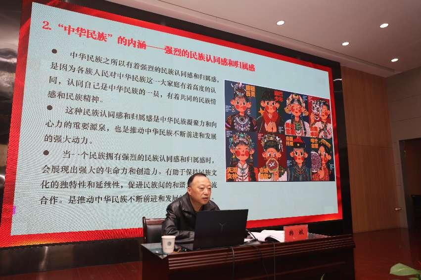 校党委副书记韩斌为新同学讲授以《铸牢中华民族共同体意识 促进民族团结进步事业发展》为主题的“开学第一课”。课堂深入浅出、鞭辟入里,结合历史典故与现实案例,深刻阐释了民族团结的内涵和时代意义,案例鲜活生动,强化了铸牢中华民族共同体的意识。