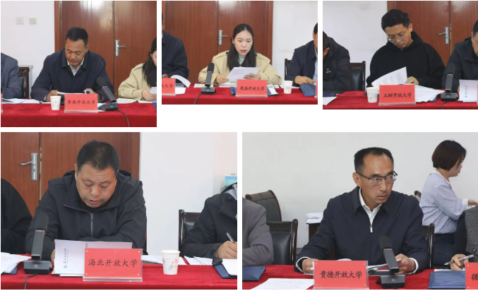 黄南州、玉树州、果洛州、海北州、贵德县5所开放大学分别从教学和学生管理,师资队伍建设等方面作会议交流发言,其他15所开放大学作书面交流发言。省校教务处、质量监控部、马克思主义学院、终身教育服务部、信息技术部、党政办公室等部门和分管校领导就分管领域工作发言。