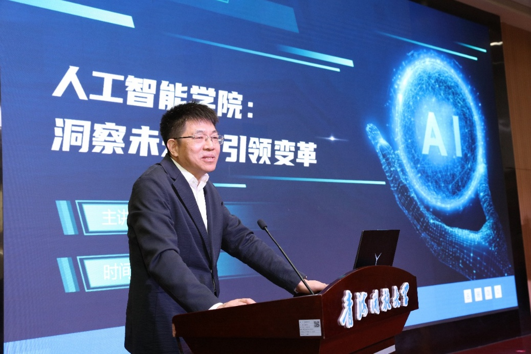 中国传媒大学经济与管理学院数智商务系教授、人工智能营销研究院院长孙道军在题为《人工智能学院:洞察未来,引领变革》的专题报告中,从宏观战略高度分析了人工智能产业学院的发展现状与挑战,系统阐述了人工智能教育与产业深度融合的发展路径,通过国内外一流高校的典型案例,展示了人工智能学科交叉融合的重要性,并就产学研一体化、产教深度融合等方面提出了独到见解,指出我校人工智能应用学院的战略定位和发展方向。