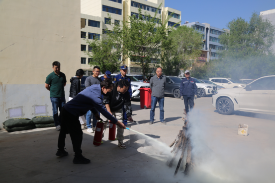 理论授课结束后,进入消防器材使用实践环节。教官现场展示了灭火器使用方法,强调了“一提、二拔、三握、四压”的操作口诀,指导教职工们依次进行了灭火器实操演练,亲身体验了如何正确使用灭火器扑灭初期火灾的应急处置能力。