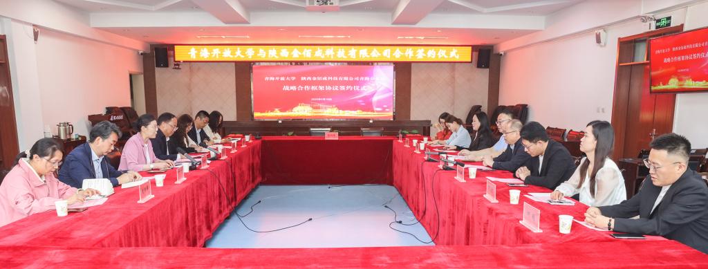 为深入贯彻落实习近平总书记关于教育工作的重要论述,切实执行《教育强国建设规划纲要(2024—2035年)》及2025年全国两会关于“强化产学研用协同创新”的决策部署。2025年5月19日上午,青海开放大学与陕西金佰成科技有限公司青海分公司签订了合作框架协议。陕西金佰成公司青海分公司董事长林振龙一行8人来校出席签约仪式,青海开放大学党委书记、校长尚玛,以及学校各部门主要负责人出席了签约仪式,校党委委员、副校长刘建红主持仪式。