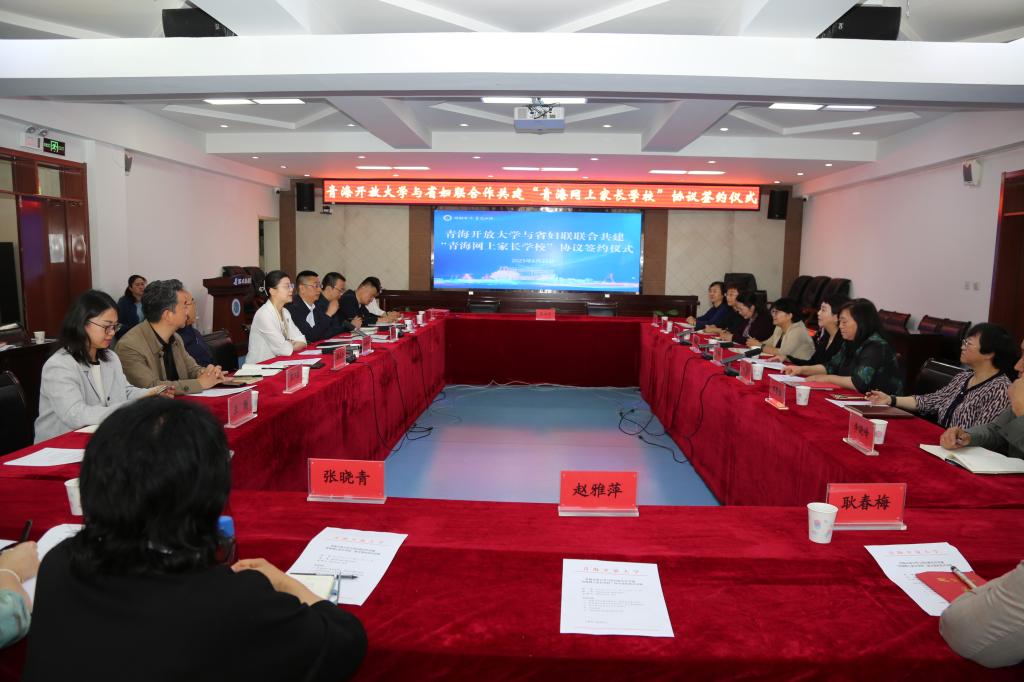为深入贯彻落实习近平总书记关于家庭教育的重要论述和《中华人民共和国家庭教育促进法》,推动家庭教育数字化、普惠化发展,2025年6月25日,青海开放大学与青海省妇女联合会在我校举行合作共建“青海网上家长学校”签约仪式。青海省妇女联合会党组成员、副主席惠缨,青海开放大学党委委员、副校长刘建红代表双方单位签约,教务处处长帖征主持会议。
