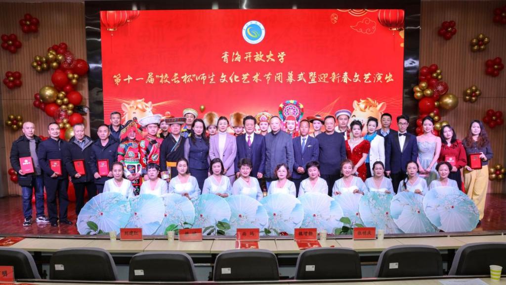 1月12日下午,青海开放大学第十一届“校长杯”师生文化艺术节闭幕式暨迎新春文艺演出在省校学术报告厅隆重举行。校党委书记尚玛等学校领导出席活动。本届艺术节闭幕式采用“线上+线下”相结合的方式,系统各开放大学师生通过网络直播同步观看,共同见证了这场文化艺术的盛会。
