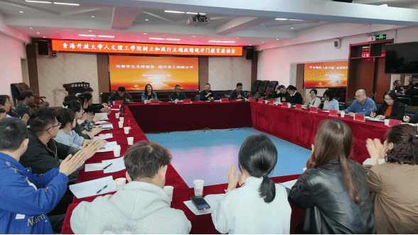 为深入落实立德树人根本任务,畅通师生沟通渠道、倾听学生心声、破解育人难题,2026年4月7日,青海开放大学组织召开树立和践行正确政绩观开门教育“你问我答”师生座谈会。校长曹广超、副校长魏增勃出席会议,学校各部门负责人和教师代表、各班主任(助理)、学生代表共43人参加,副院长梅林主持。