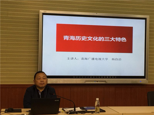 青海文化研究专家、青海广播电视大学校长杨自沿作了题为“青海历史文化的三大特征”的讲座。杨校长以党的文化强国和我省的文化名省战略为切入点,概括了青海历史文化的三大特征:即青海是华夏文明重要的“发祥地”、青海是中华民族特色文化的重要“保护地”、青海是中华多元一体文化的“缩影地”。杨校长的讲座引经据典论证了青海博大而深厚的文化底蕴,为学生展示了一幅既熟悉又陌生的青海历史文化画卷。
