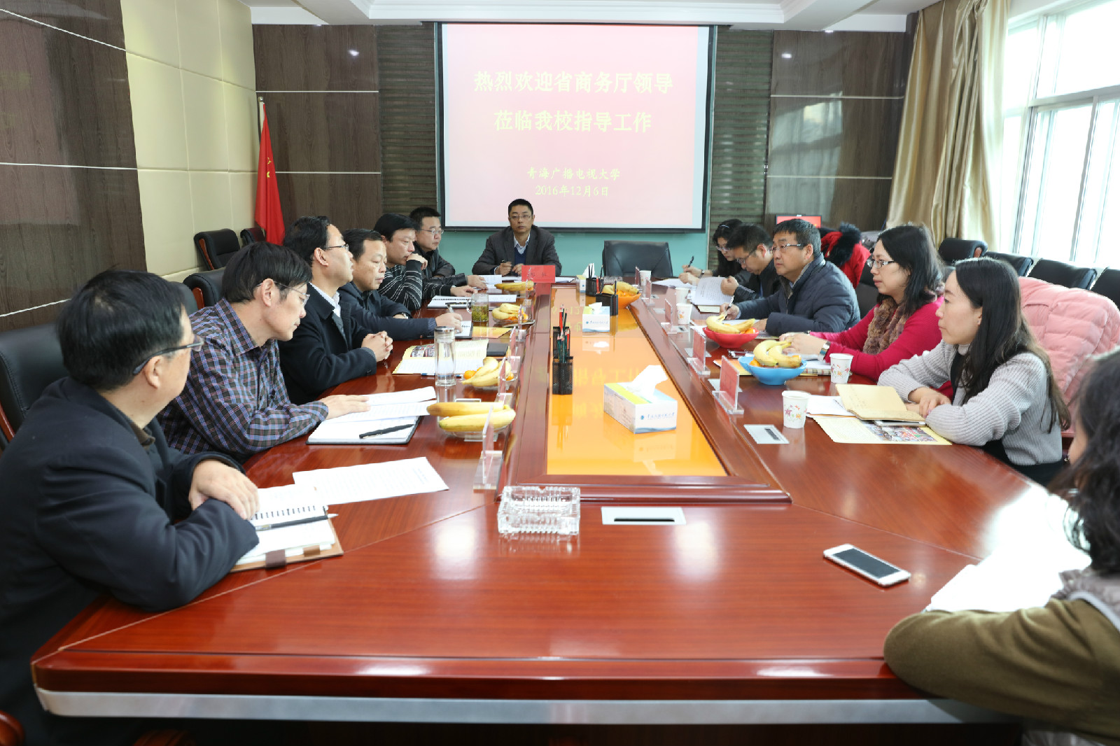杨自沿校长介绍了电大在网络和资源等方面的优势,以及考察浙江大学、北京开放大学等省外高校电子商务学院建设的成功经验,表达了我校与商务厅合作办学的期望。
