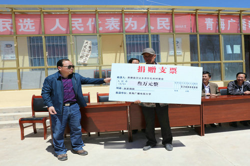 捐赠仪式上,青海电大杨自沿校长代表学校全体教职工向亦什扎村捐款3万元;青海电大辛全洲副校长与亦什扎村村民委员会主任索南东主共同为省电大捐赠的“亦什扎村计算机网络教室”揭牌。索南东主激动地说,省电大与亦什扎村建立联点帮扶关系以来,贯彻党的扶贫政策,心系全村群众,积极帮助村里做了大量实实在在的扶贫帮困工作。他说,在省电大领导和干部们的关心帮助下,我们亦什扎村也有了自己的“计算机网络教室”,这是全村的一件大喜事。有了计算机网络教室,乡亲们可以在村里学习电脑、上网了解致富信息了,村里的娃娃们也可以学电脑、用电脑了。我们衷心感谢省电大的无私援助,一定要让“计算机网络教室”在脱贫致富奔小康的路上发挥作用。