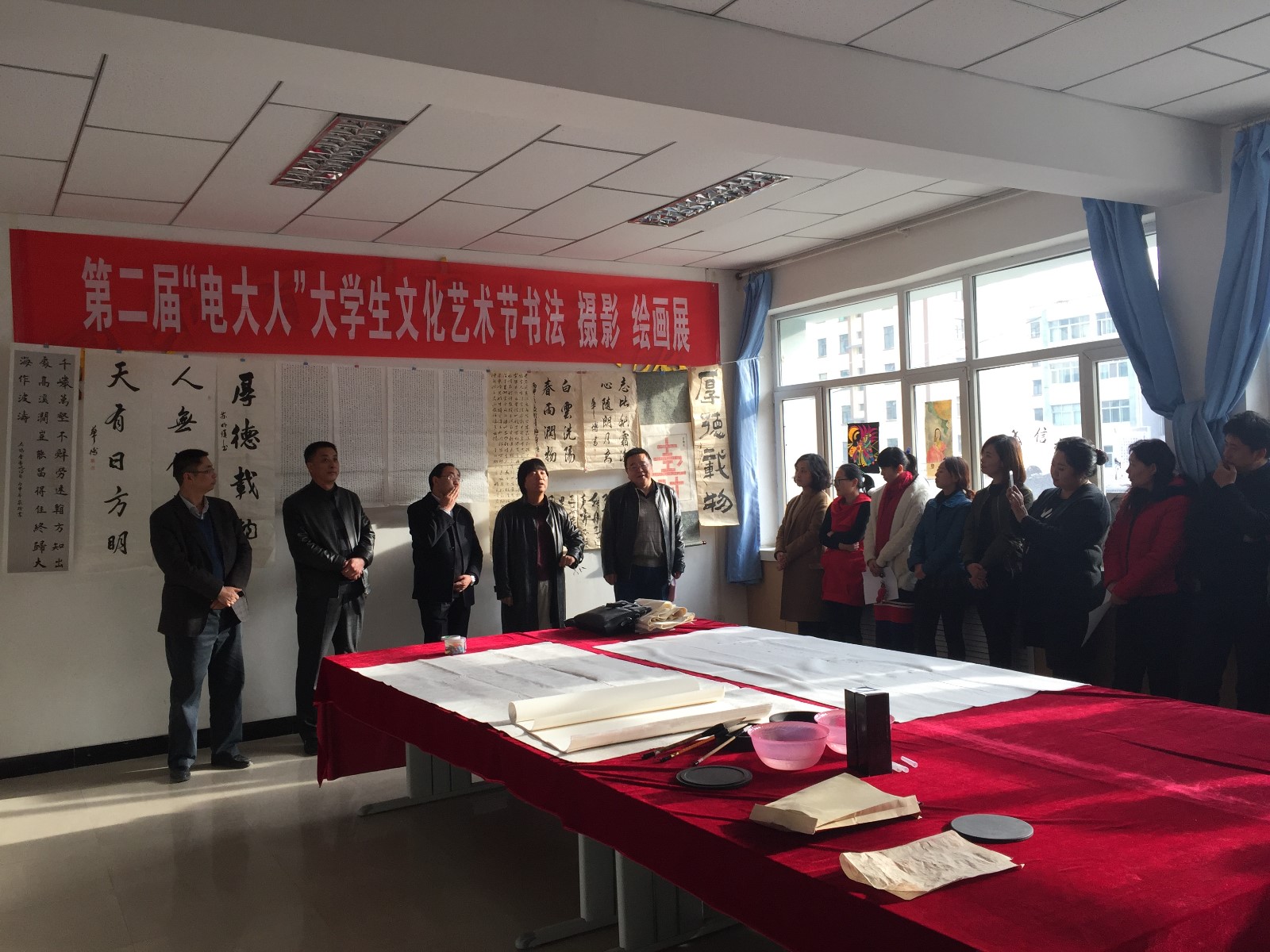 12月2日,学校成功举办了第二届“电大人”大学生校园文化艺术节书法家进校园暨摄影、书法、绘画大赛。此次活动邀请到了青海省书法家协会理事兼副秘书长、青海省书法家协会学术委员会副主任黑鬼,中国书法家协会会员、青海师范大学书画学院院长都世庭。辛全洲副校长、文学院院长贾民力、理工学院副院长帖征和学校教职工观看了展出。