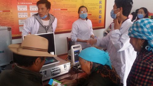 2017年,青海电大联合党支部结合扶贫工作实际,到帮扶贫困户家中进行了走访、慰问、调研,了解到村中很多贫困户家庭由于长期在高寒地带生活,患有风湿病和日常疾病的群众很多,很多村民长期没有体检过等困难,联合党支部党员通过与青医附院工会协商,针对亦什扎村实际情况,将体检设备、疼痛治疗设备等搬运到村中,为村里群众免费进行血常规、尿常规、肝功能等7大项检查;对患有风湿病疾病、行动不便的群众,青医附院疼痛科的专家使用了青海最新可移动痛疼治疗设备对患病群众进行疼痛治疗。
