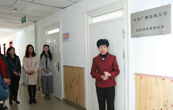10月9日,青海电大思想政治理论课教研部揭牌仪式在人文学院举行。青海电大党委书记庞晓玲、副校长辛全洲、思政理论课教研部主任贾民力出席仪式。会议由辛全洲同志主持。