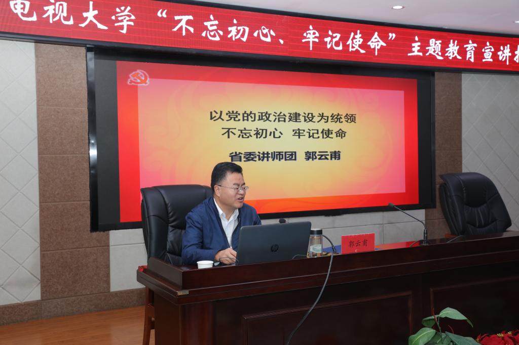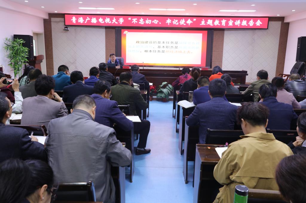 为教育引导广大党员干部充分认识开展“不忘初心、牢记使命”主题教育的重大意义,紧紧围绕目标要求,全面贯彻落实各项工作安排,根据省委统一部署,9月30日上午,青海广播电视大学举办了主题教育宣讲会,省记协专职副主席、省委宣讲团团长郭云甫作专题辅导讲座。校领导班子及全体党员参加了会议。校党委书记庞晓玲主持宣讲会。