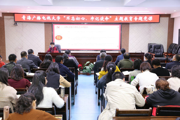 2019年10月25日,青海广播电视大学党委书记庞晓玲为全校党员作了题为“认真贯彻落实习近平总书记重要论述,坚守立德树人初心使命”的专题党课。省委第五巡回指导组成员李德福同志莅临指导。
