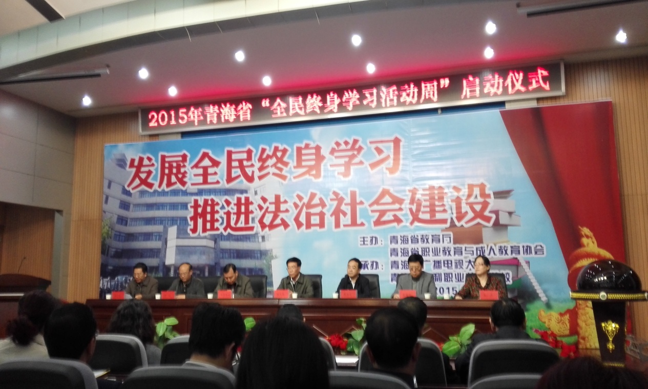 2015年9月23日上午,由省教育厅、省职业教育与成人教育协会主办,青海广播电视大学承办的“青海省2015年全民终身学习活动周”举行启动仪式,拉开了以“发展全民终身学习,推进法治社会建设”为主题的全民终身学习活动周序幕。省政协副主席鲍义志、省委教育工委书记燕海茂、省人大、省政协教科文卫委员会的相关领导出席启动仪式。来自高校、西宁市、海东市及区县教育部门和社会办学机构的师生代表140余人参加了会议。