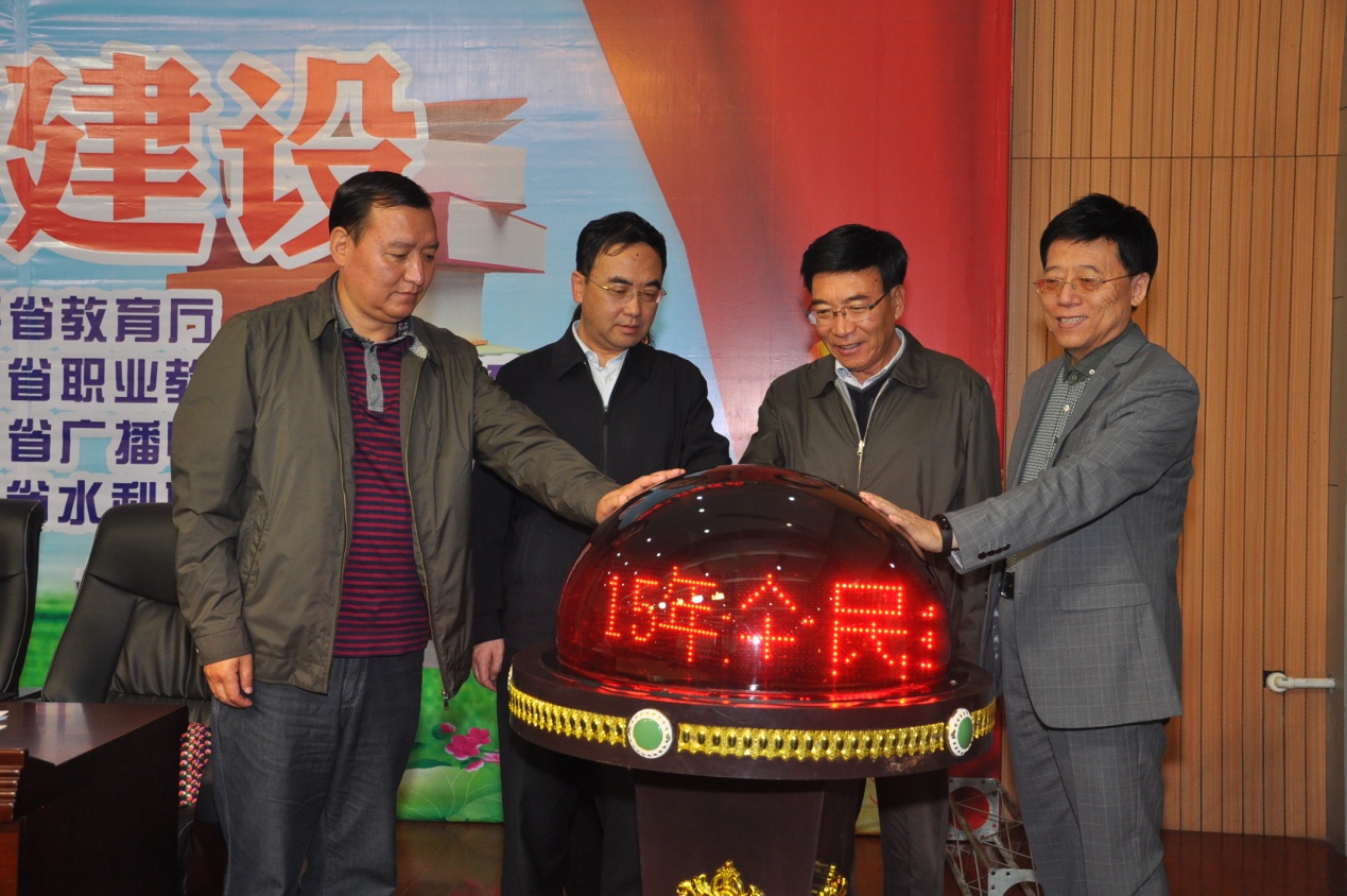 省政协副主席鲍义志(左三)、省教育工委书记、省教育厅党组书记燕海茂(左二)、省人大教科文卫委员会副主任委员公保才让(左一)、青海广播电视大学党委书记高海宾(左四)共同启动全省终身学习活动周。