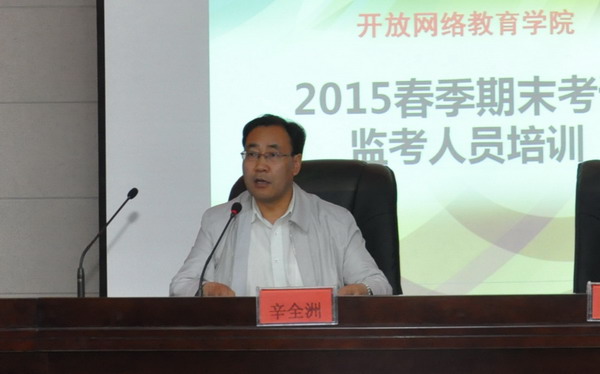 为了加强考试管理,进一步明确监考人员职责,保障考试工作的顺利进行,7月7日上午,学院组织召开了2015年春季期末考试监考人员培训会。会议由开放网络教育学院贾民力院长主持,副校长辛全洲出席了培训会。