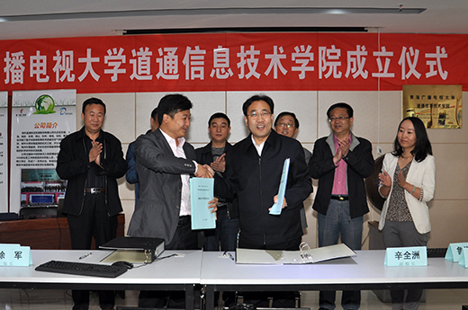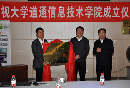 2015年5月20日上午,青海广播电视大学与海东道通科技发展股份有限公司举行合作办学签约仪式,海东市人民政府常务副市长初军威、副市长李青川、青海广播电视大学副校长辛全洲、海东道通科技发展股份有限公司董事长赵滨博士以及学校相关职能部门的领导在海东工业园共同签署了战略合作框架协议,“政府、高校、企业”三方共同为青海广播电视大学海东道通信息技术学院揭牌。签约、揭牌标志着青海电大与海东道通公司合作正式启动。