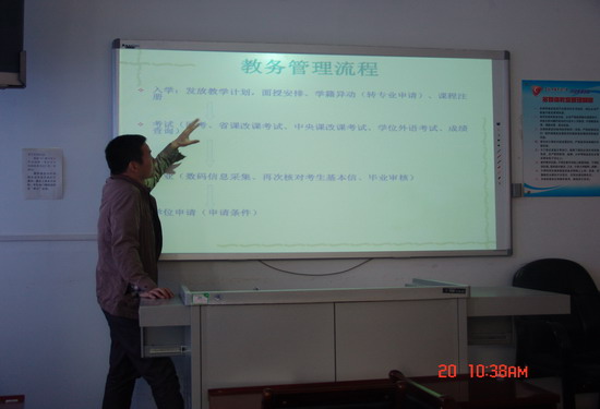 2014年4月20日,为了加强学院 “三基”建设,提高教学管理能力和水平,开放网络教育学院举办了教务工作培训会。培训会由学院院长贾民力主持,马生海老师讲解。