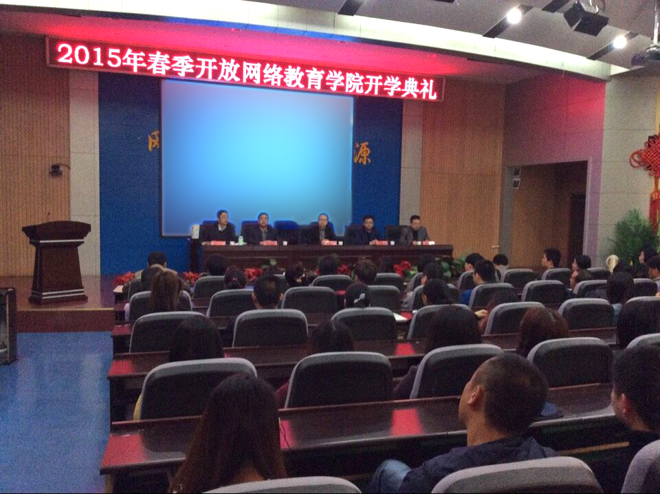 2015年4月12日上午9点,青海广播电视大学开放网络教育学院2015年春季新生开学典礼在学术报告厅举行。校党委委员、副校长李丽荣、教学指导中心主任吕春峰、教务处副处长李洪德、开放网络教育学院院长贾民力、开放网络教育学院全体教师以及2015年春季新生参加典礼。开放网络教育学院副院长帖征主持典礼。