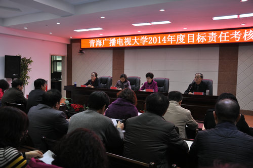 校党委书记高海宾代表学校领导班子作了落实2014年度目标责任情况的报告。他从党建思政、教学科研、办学规模、合作办学、师资队伍与教学资源、基础设施及推进开放大学建设等9个方面全面回顾了2014年学校取得的新发展、新成绩,同时就学校发展中面临的困难和存在的不足进行了客观的分析和说明。会上,党委书记高海宾和校领导班子成员分别以书面形式作了2014年度党委书记党建工作专项述职报告和领导干部个人述职报告。