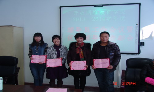 会议开始,帖征副院长强调了辅导员工作的重要性。接着学生科科长李齐英总结了2013-2014学年度开放网络教育学院的辅导员工作,肯定了一年来辅导员工作取得的成绩,指出了存在的问题和不足,并提出了解决问题的对策和建议。随后贾民力院长宣读了开放网络教育学院表彰2013—2014年度优秀辅导员的决定,李丽荣副校长、李洪德副处长、贾民力院长、帖征副院长对受到表彰的金莹、方小宁、吕文科、曹峥四位辅导员颁发了荣誉证书。四位受表彰的优秀辅导员就自己工作的经验方法和心得体会,逐一进行了交流发言。