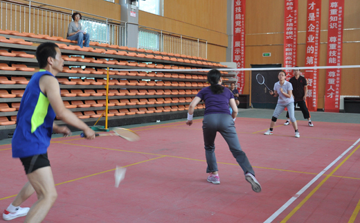 赛后我校教师与世纪职业技术学校教师进行了排球、羽毛球表演赛。