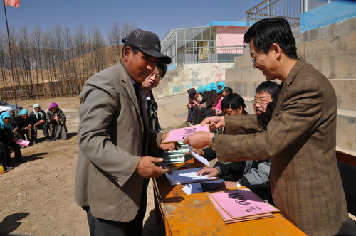 贵德县扶贫局董瑞副局长、尕让乡王干事参加了献爱心、送温暖活动,并对我校开展扶贫工作情况进行了民意测评。(校扶贫领导小组供稿)