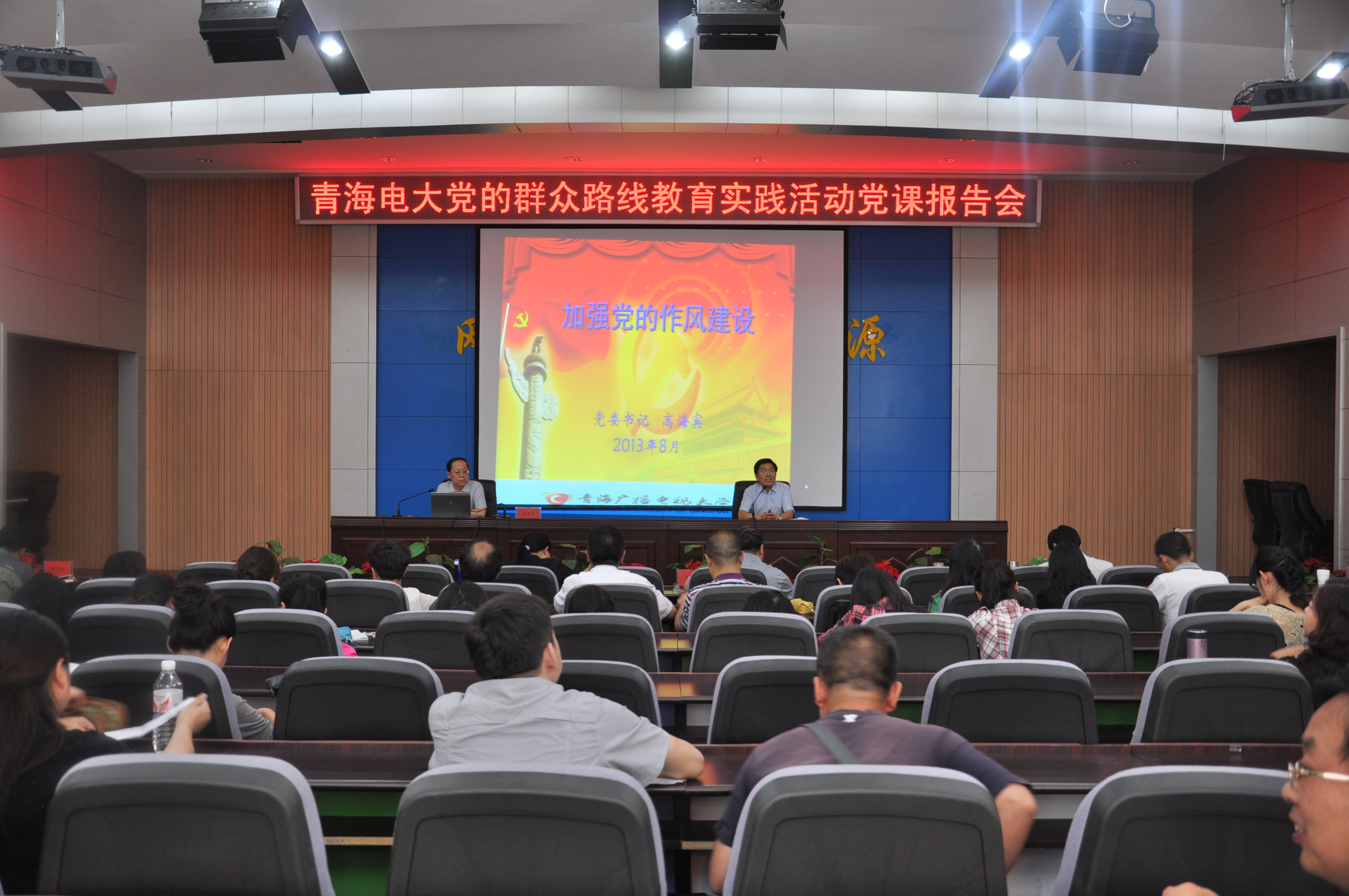 8月30日下午,青海电大举办党的群众路线教育实践活动党课报告会,校党委书记高海宾为全体教职工作了题为《加强党的作风建设》主题报告。