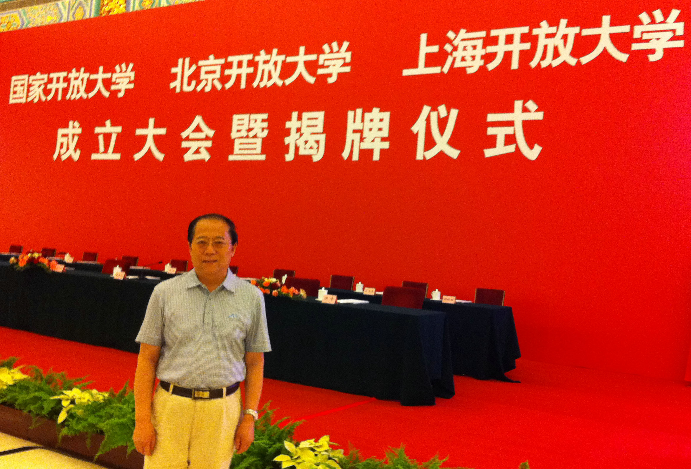 2012年7月31日,国家开放大学、北京开放大学、上海开放大学挂牌仪式在人民大会堂金色大厅隆重举行。中共中央政治局委员、国务委员刘延东出席并为国家开放大学、北京开放大学、上海开放大学成立揭牌。教育部部长袁贵仁主持会议,有关部门和地方负责同志及3所开放大学师生代表400多人参加会议。我校党委书记高海宾应邀出席揭牌大会,代表学校赠送了礼品,还参加了座谈会。