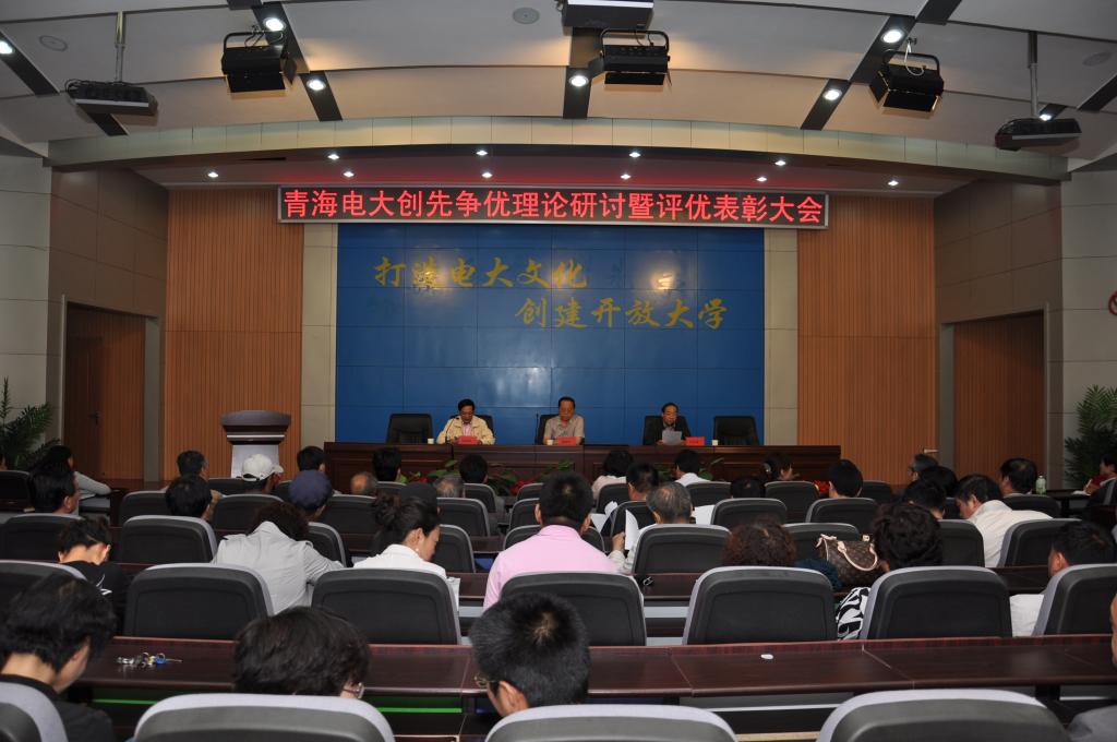 2012年6月27日下午我校在学术报告厅隆重召开了创先争优理论研讨会暨评优表彰大会,党委书记高海宾同志、党委副书记、校长祁永寿同志出席会议,全体教职工及部分在宁的老干部党员共113人参加会议。