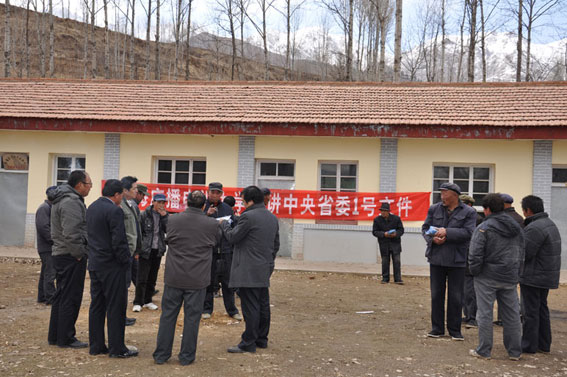 党员活动室里,明亮的会议桌已摆放在正中央,四周是崭新的二十把折叠椅,教师们捐赠的书也整齐地摆上了桌子。里面已经围满了当地的群众,祁校长叫大家坐下来,语重心长地对各位业隆村的父老乡亲们说:“帮也帮不了多少,扶也扶不下多少,学校比起有些单位还是差。但是我们想尽我们的一点心意,每年给大家解决上点小问题,村上提出来‘能不能把党员活动室武装武装,我们做了,本有一些柜子,下一次我们来时,再送过来。刚才,跟村委书记、村民委员会主任喧了一些,这里无非就是这个条件:一个是种,种就是种庄稼;一个是养,养就是养牛羊。——我们尽我们所能,一方面让村上、乡上给大家做发展规划,有些事到省上跑跑,把一些事争取争取——只能说跑一跑、看一看,因为项目不在我们手里,在政府手里,所以要跑,要尽我们最大的努力。听说,去年的油菜籽产量不错,我们很高心,我们会尽所能帮助大家的!你们一听哈,我也是个青海人,也是个乡里人,你们的家乡跟我们的家乡差不多,也在山里面,但是,我们离西宁近,你们离西宁远,我们路道好,你们这里路道不好,所以,我们那边养羊、养牛、种菜籽、种大豆、种洋芋,洋芋收成好,用青海话说哈‘揽下了’,一亩能打六千到八千斤,但价格也受市场影响较大。希望乡上、村上克服点困难,多向县上把你们的困难、想做的事情,做成‘尕本本’(项目书),不会做,给我们说,我们给你们做,比如做点养殖业的事,本子我们可以做,可以申报一些项目!我们学校也在做项目,如专业项目、学科项目,这样的项目我们会做。项目书做好了,我们也可以帮着你们跑,你们也帮着跑,跑的过程中,说不定,人只要动起来就活了,不出去就活不下,这个情况就只门个!在我们学校里,我也老在讲:‘走出去,走出去’,走出去干什么?走出去为社会服务去,做各种项目,既给社会做贡献,又把我们老师锻炼了,同时,老师的收入也上来了。——这和庄稼人是一样的道理。庄稼人跑是为了把自己的事情办好,学校走出去,也是为了把学校的事办好,所以,我们在这方面做着些工作,因此上,有句话比较好:人穷不可怕,怕大家不动弹,只要动弹,一些事就能成就!另外,学校给大家带了一些书,但这些书大家不一定都用得上,里面有法律的、经济的,都是老师们捐的,这一次捐书没有做要求,下一次捐一些实用的书,把书柜也送过来。我们学校在物质上给大家力所能及地帮忙,我们觉得文化上要多扶点贫,教育上要多扶点贫,让大家掌握点东西比较好,我不知道这里的娃娃念书咋样?我曾给我的家乡争取省上的电视卫星项目,娃娃们打开电视就能看到全国最好的教师讲的课,如果娃娃们把全部接受下来,学习就上去了,所以,教育和文化恐怕是我们这个地方上一个非常需要做的事情,如果书念不下,字识不下,现在种庄稼慢慢儿也在讲科学,以前山上的小菜菜最多打二百斤,现在可以打到五百斤,为啥?科技育种,产粮就能上去,榨得油就能上去,从这个角度上来说,必需学文化、掌握知识!我是个当校长、当老师的人,所以应当动员娃娃们上好学,要走出去。老百姓走出去,就是要搞副业,当小工不行,要当大工,和墁墙一样,要比小工儿高级点,否则当不上大工。冬天到了,村里的年轻人到全后,学习上三四天,一些小技术就能跟上了。最后,有一句话要说,那就是我们能做的就做,大家都努力!