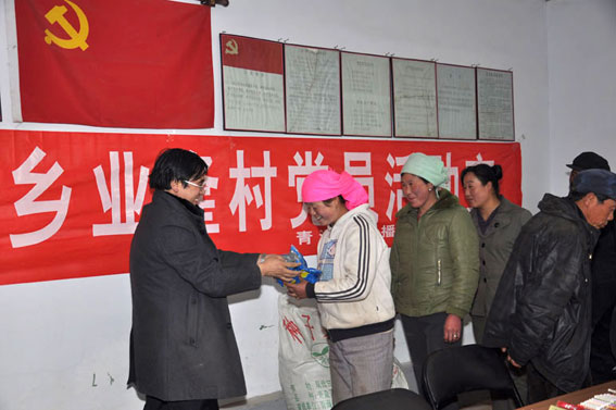 车中满载着青海广播电视大学领导层和每一位教职工的爱心。学校决定:为贵德县尕让乡业隆村配备党员活动室会议桌椅,带去250斤菜籽种子;学校的教师们也纷纷捐增了各类书籍,进行文化扶贫。