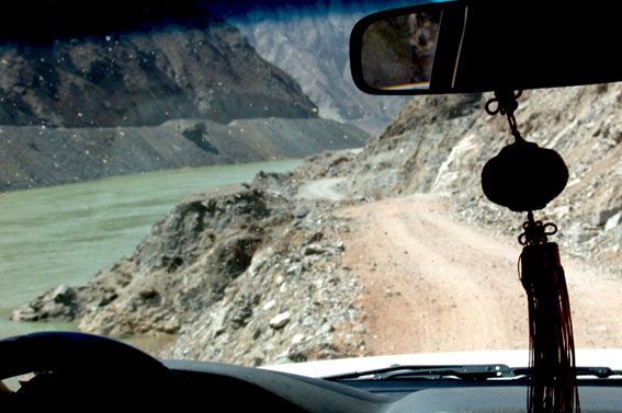 车走了很长时间才穿过拉脊山,来到公路边上的尕让乡政府,司法所的张所长和一名带乡干部挤上了我们的车,向黄河岸边疾驰而去。路是砂石铺成的,车颠簸得很厉害,左边是风化了的山石;右边是淡绿色的、深不见底的黄河。