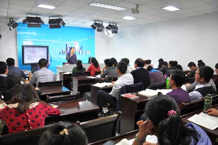 本学期开学后,教育技术中心对翰博尔录播等系统进行了多次调试,乐都电大、循化电大、乌兰电大等州县电大和行业教学点先后参与了直播测试。在此基础上,与开放教育学院联系、协商,确定了直播课程和时间表,教育技术中心将开放教育学院信用联社班面授的合计17个课时的《公司财务》和《统计学原理》课程,面向全省电大现场直播。海西电大、乌兰电大、循化电大、海北电大、果洛电大、黄南电大,大通电大等州县电大远程收看了直播课堂。据基层电大和相关教育技术人员反馈,这次直播视频图像基本流畅,电子白板板书清晰,现场教学互动声音清晰,授课老师认真活泼;利用直播课堂开展远程教学,既可以积累教学资源,又可以扩大教学受众面,有利于资源共享和远程教学质量的提高。