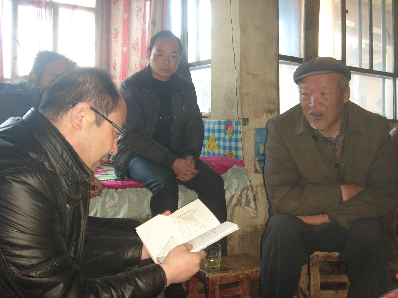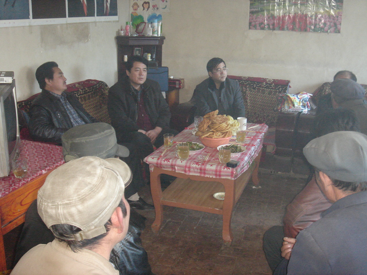 早晨11点左右,由傅学彬同志为组长的一行五人小组在贵德县尕让乡乡长豆太扎西的陪同下驱车来到茫茫冰雪覆盖的拉鸡山南麓的业隆村。听说宣讲组到来,村委书记家已经召集了十几位村民代表,宣讲组和乡干部采取和群众座谈的形式,了解业隆村村民最关心的问题,解答村民们提出的问题。宣讲组通过重点宣讲解读、解疑答惑、与征求群众意见相结合等方式,把今年中央和省委1号文件的主要精神和党的支农惠农政策解读给群众。并按照我省维护农村社会稳定工作的部署要求,向农民群众宣传维护农村社会稳定的重要意义,以深入浅出、通俗易懂的方式宣讲相关政策,解答群众关心的热点难点问题,把中央和省委维护农村社会稳定的政策宣传到位。