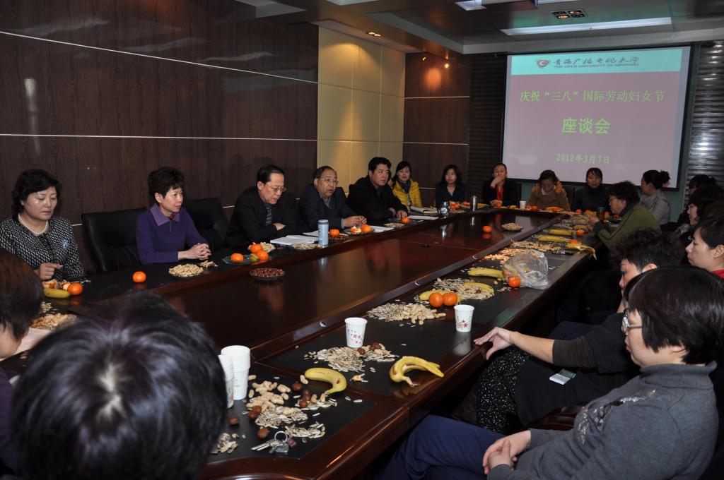高海宾书记祝女教工节日快乐。他说:国际劳动妇女节已走过了百年的历史,如今党的十八大和青海省十二次代表大会即将召开,我省贯彻落实青海省妇女儿童“十二五”规划进入关键时期。我们通过召开座谈会,回顾过去一年来电大女教工的辛勤工作,要肯定取得的成绩和对推动电大发展所做出的积极贡献。结合学校的发展,高书记提出了三点希望和要求:一是在我校处于重要战略机遇期和黄金转型期之际,广大女教工要紧跟时代步伐,巾帼不让须眉,大显身手,建功立业。积极投身到建设“两个中心,办好开放大学”为核心的,以“狠抓教学促质量,稳定规模增效益”为重点的,以“工作目标管理责任制”和“教学质量建设年”为抓手,以“创先争优,强化党建”为保障,继续秉承和发扬“自信、开放、创新”的青海意识和“人一之,我十之”的实干精神,坚持团结干事、激情干事、踏实干事,主动出击,强抓机遇,稳步发展学历教育、大力发展非学历教育,全面推进电大事业的转型发展、创新发展和科学发展。希望大家志存高远,弘扬海纳百川,追求卓越,追求公正、包容、责任、诚信的社会主义核心价值取向,以崇高的精神点亮女性的美丽;要脚踏实地,以主人翁的姿态支持改革,积极创新,积极投身到我校创新驱动、转型发展的实践中去,以积极参与点亮女性的美丽;要优雅达观,注重学习,提高自身修养,促进自身的发展,以文明的风尚点亮女性的美丽。二是希望全体女同胞维系家庭和睦,促进社会和谐。大力弘扬和传承中华民族的传统美德,积极推动社会主义核心价值体系建设;倡导科学、健康的生活方式,营造相互关心、相互帮助、相互信任、相互包容的家庭关系和邻里关系,努力把电大建成幸福、和谐、温暖的大家庭。三是加强电大妇女组织建设,积极参与社会管理创新,把广大妇女群众更好地团结到党的周围,切实把妇女组织建设成为党开展妇女工作的坚强阵地。校党委、工会和各党支部要树立马克思主义的妇女观,坚决贯彻落实男女平等的基本国策,坚持妇女与经济社会同步发展的战略,动员各方面的力量关心、支持妇女的事业,引导社会更加尊重妇女、维护妇女权益,实现女性的全面发展。