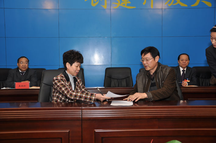 九届一次教代会暨工代会闭幕后,学校举行了工作目标责任书、综合治理责任书和党风廉政建设责任书签字仪式。校领导高海宾、祁永寿、赵志鹏、庞晓玲分别与主管部门领导签订了责任书。