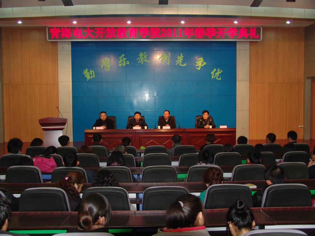 2011年3月13日上午,青海广播电视大学开放教育学院在学术报告厅举行2011年春季新生开学典礼。青海广播电视大学副校长李宝安同志出席了本次典礼,典礼由开放教育学院院长胡华同志主持,开放教育学院副院长贾民力同志、副院长韩海林同志以及开放教育学院全体老师,参加了这次典礼.