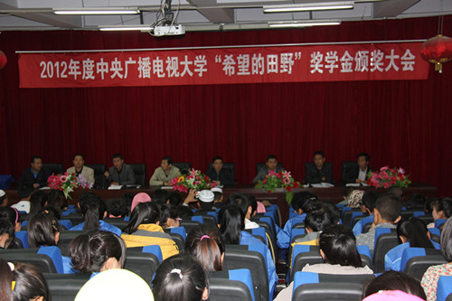 中央广播电视大学2012年度“希望的田野”奖学金的获奖结果已经公布,我省循化广播电视大学2011级秋季农村行政管理专业韩忠辉同学喜获此奖,循化电大于2013年9月26日上午组织了由校领导和部分电大学生参加的颁奖仪式。省校希望广大“一村一名大学生计划”试点学生以获奖学员为榜样,克服各种学习困难,积极适应现代远程教育学习模式,取得更多优异的成绩,为社会主义新农村建设做出更大贡献。