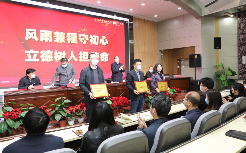 会上,学校对2019年度考核优秀的3个优秀部门、15名优秀个人进行了表彰。