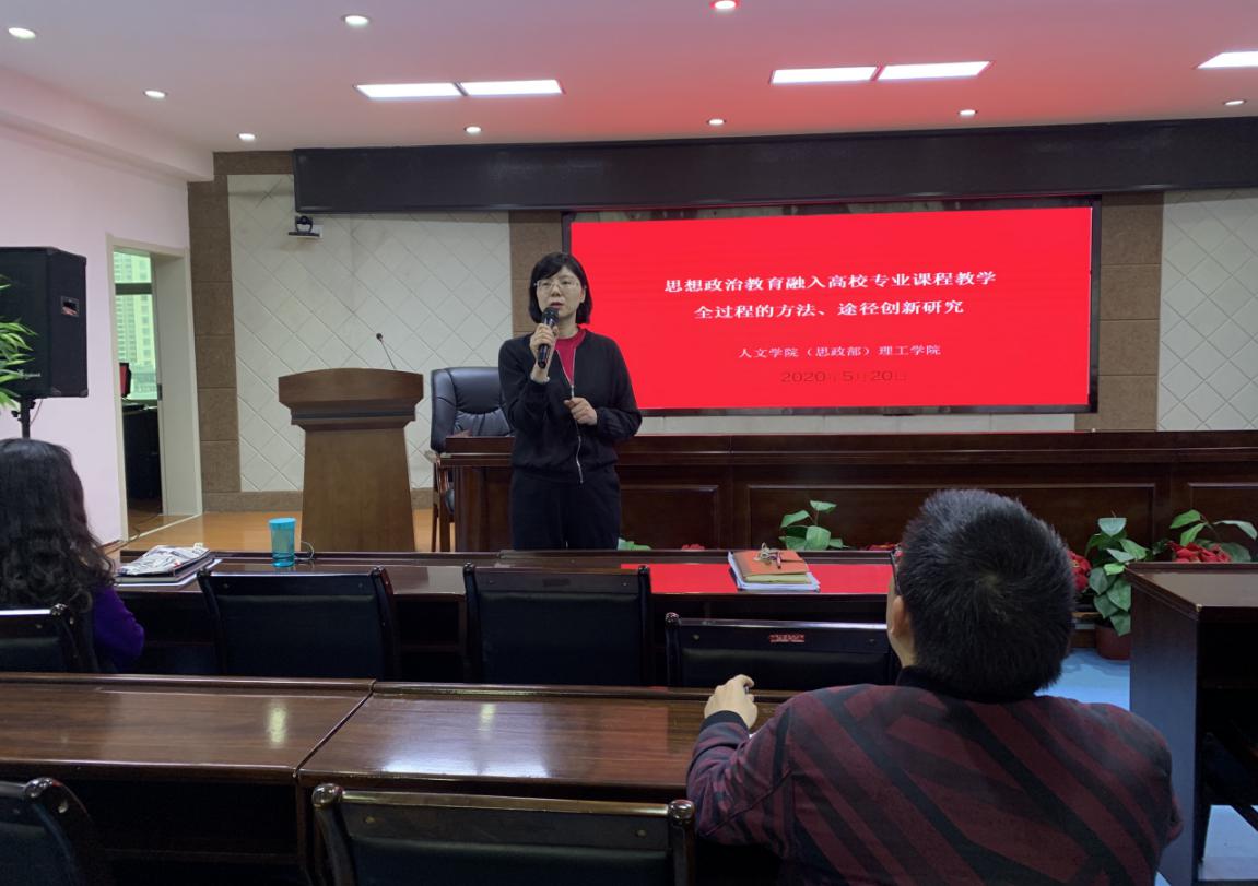系列培训活动结束后,人文学院(思政部)、理工学院又以“思想政治教育融入高校专业课程教学全过程的方法、途径和创新研究”为主题组织教师开展了教学研讨活动。