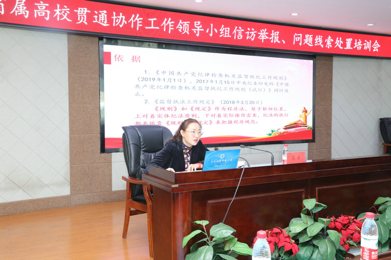 培训会邀请驻省教育厅纪检监察组工作经验丰富的一线办案工作人员高君同志进行授课。培训聚焦信访举报和问题线索处置工作的难点和疑点,围绕开展谈话函询、初步核实、以及立案调查工作,从信访举报与问题线索、问题线索的分类处理、问题线索四种处置方式、谈话函询、初步核实、立案审查调查、审理7个方面进行了讲解,培训过程中将《中国共产党纪律检查机关监督执纪工作规则》《监察机关监督执法工作规定》贯穿始终,条分缕析,并通过列举实例着重对问题线索处置过程中的常用文书、处置流程、审批程序、证据规范等进行操作演示,解决了纪检干部实际工作中的“本领恐慌”问题。
