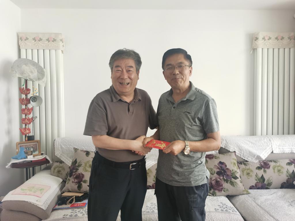 刘青副校长为退休副校长段宏伟送去节日慰问与祝福,详细介绍了学校近期发展情况,希望他保重身体,继续发挥经验优势,一如既往关心和支持学校发展。