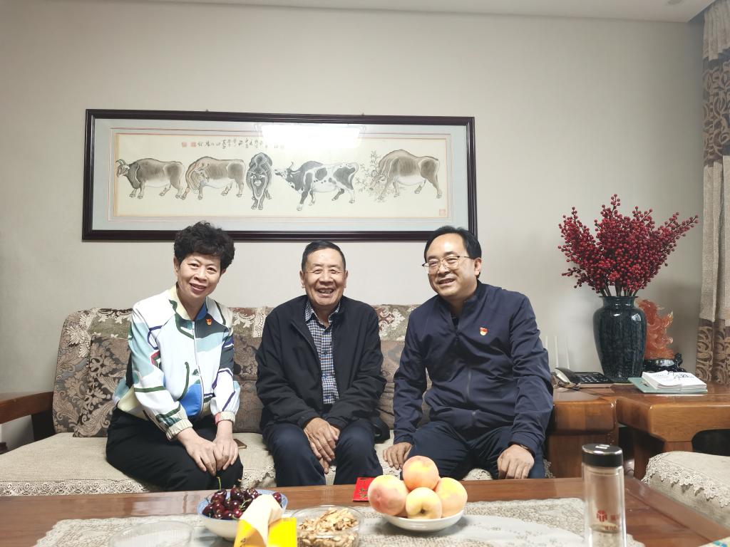 在退休党委副书记赵志鹏家中,党委书记庞晓玲亲切与他交谈,详细询问了他的身体和生活状况,高度赞扬了他为开放大学事业做出的贡献。