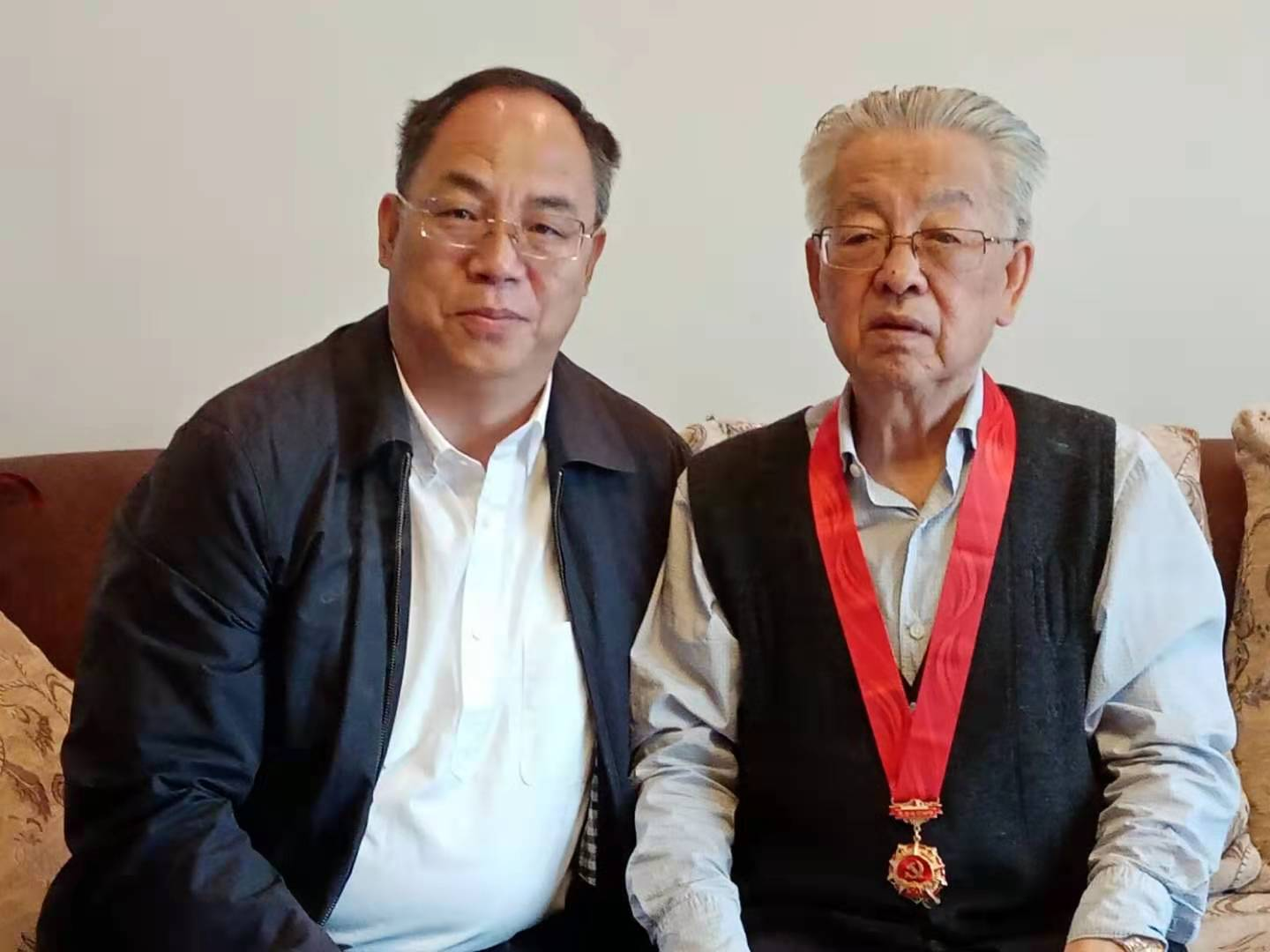 党委副书记、校长尚玛向在党65年的退休副校长张生海颁发“光荣在党50年”纪念章,向他致以敬意和祝福,对他为学校付出的艰辛努力表示感谢。