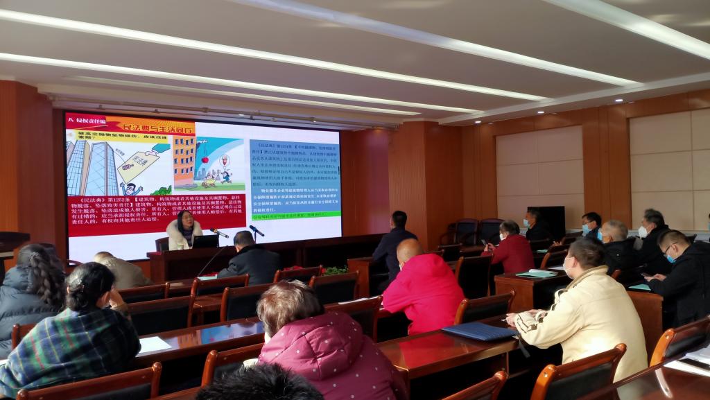 举办宪法进社区讲座。针对社区群众法治需求和关注的热点问题,结合“宪法进万家”活动,组织法学专业教师深入虎台街道办事处和所辖社区利用市民讲堂、道德讲堂等阵地开展题为“美好生活民法相伴”的专题讲座,推进基层依法治理,受到社区群众广泛欢迎。