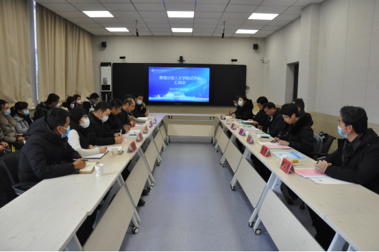 为了扎实做好2023年办学评估工作,2021年11月29日,河北开放大学原教务处处长李刚教授,山东开放大学教务处副处长邹燕副教授、浙江台州开放大学教务处处长陈宜根副教授和青海开放大学教学督导组副组长王照侠教授4位专家组织评估组对人文、理工学院办学情况进行了实地试评估。副校长刘青、刘建红,教务处处长苏少岩,人文、理工学院办学评估工作组相关负责人、教师代表、学生代表参加了本次评估,各系统电大代表进行了现场观摩。会议由人文学院副院长欧明建主持。