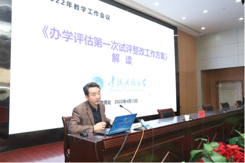 4月13日,青海开放大学召开2022年教学工作会议。学校领导班子成员、各部门负责人、全体专兼职教师、学生代表参加了会议,全省各系统电大校领导、负责人及教务教学管理人员通过网络远程参会。副校长刘青主持会议。