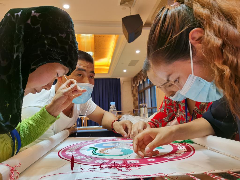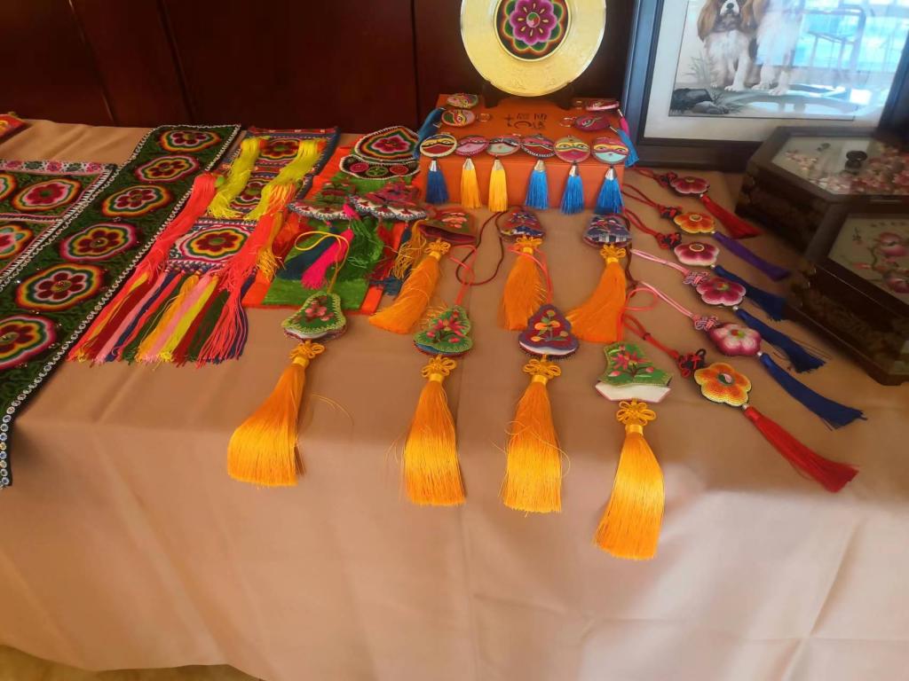 结业仪式前学员们展示了培训期间创作的部分青绣作品。